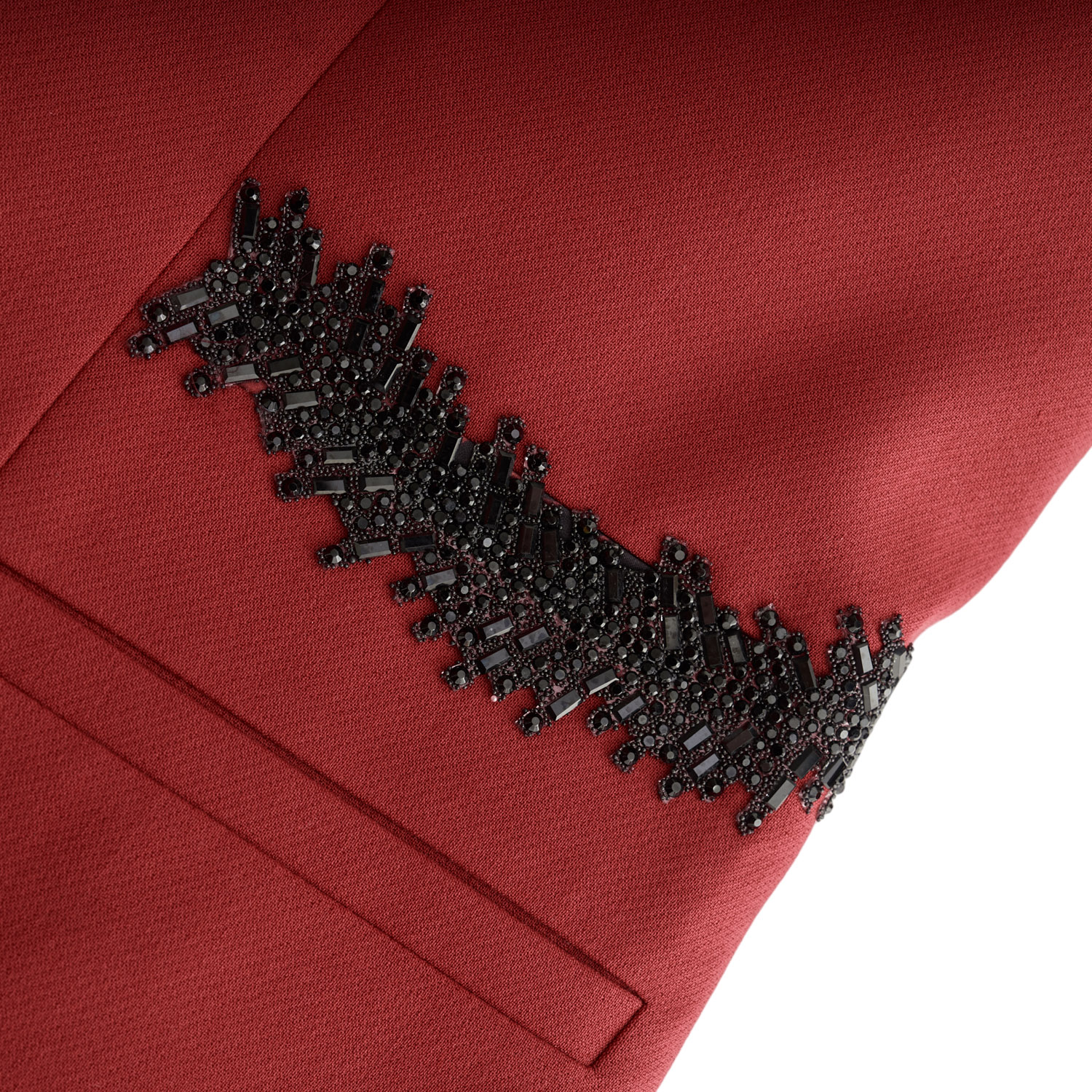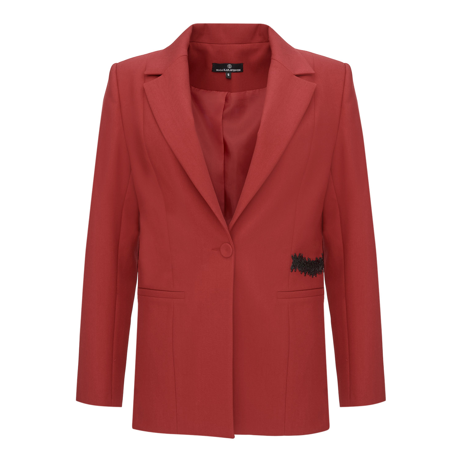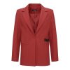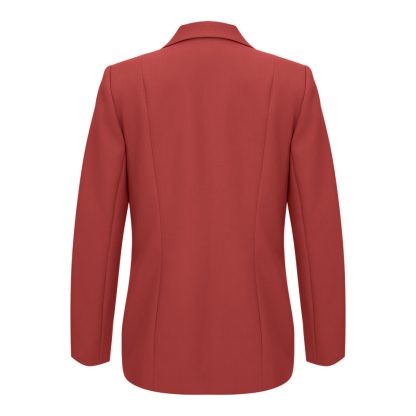 Elegant and dynamic blazer in a deep red tone, tailored to perfection. Featuring clean lapels and a subtle artistic detail, it is ideal for statement looks from morning to evening.