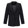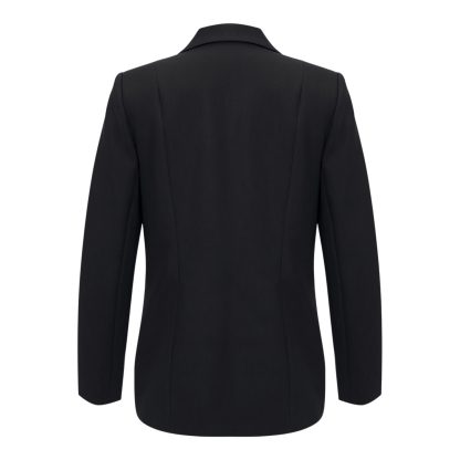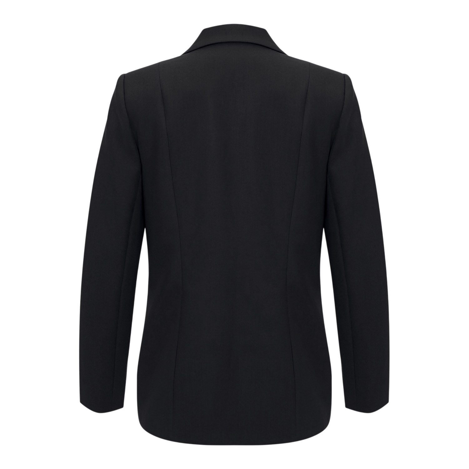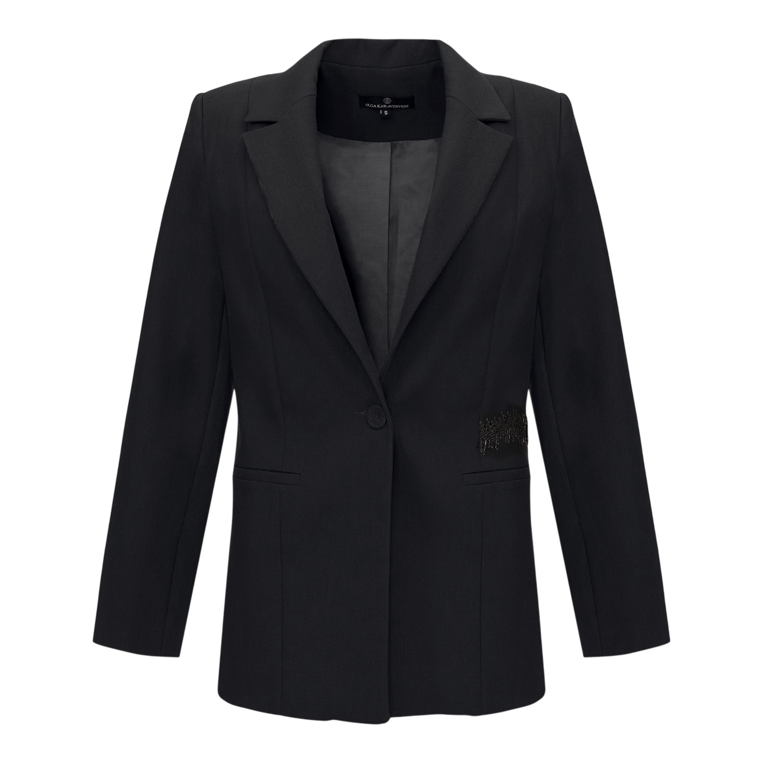 Elegant black blazer with a sharp silhouette and impeccable tailoring, exuding strength and modern femininity. Subtle detailing adds character, making it ideal for powerful looks from morning to evening.