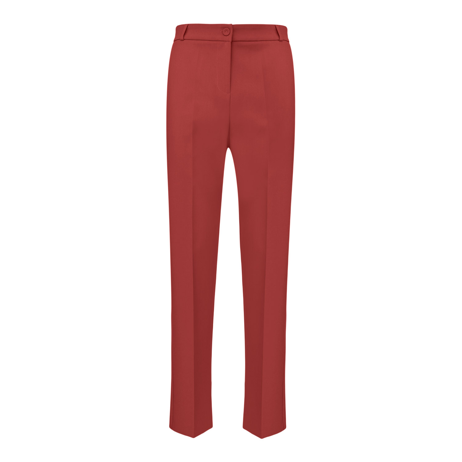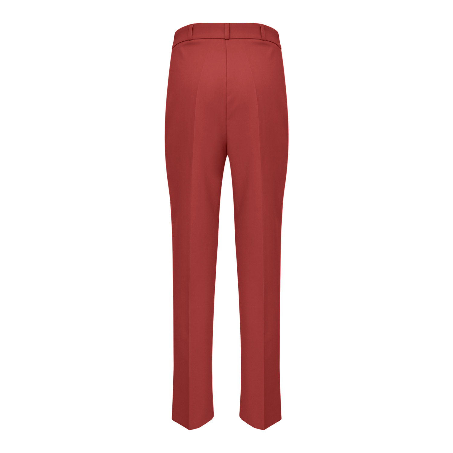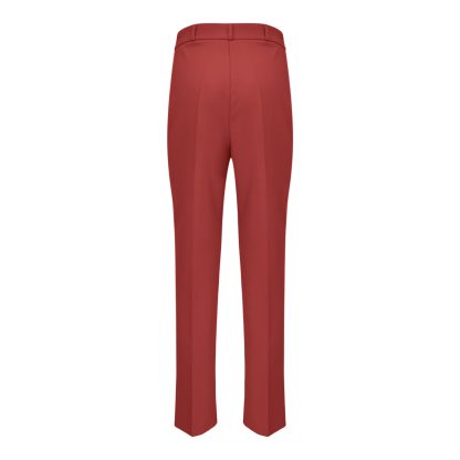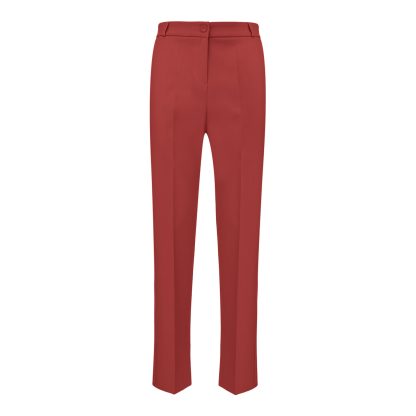 Elegant trousers in a deep red tone, impeccably tailored with a straight, elongating silhouette that conveys modern feminine strength. Ideal for statement looks from morning to evening.