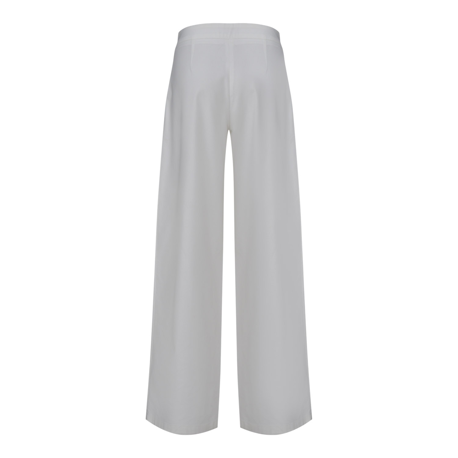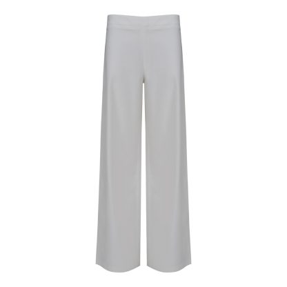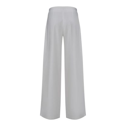 High-waisted trousers with a relaxed, fluid silhouette, designed to embrace the body with natural elegance. The purity of white and the airy movement of the fabric create a contemporary couture foundation, ideal for dynamic and refined looks.