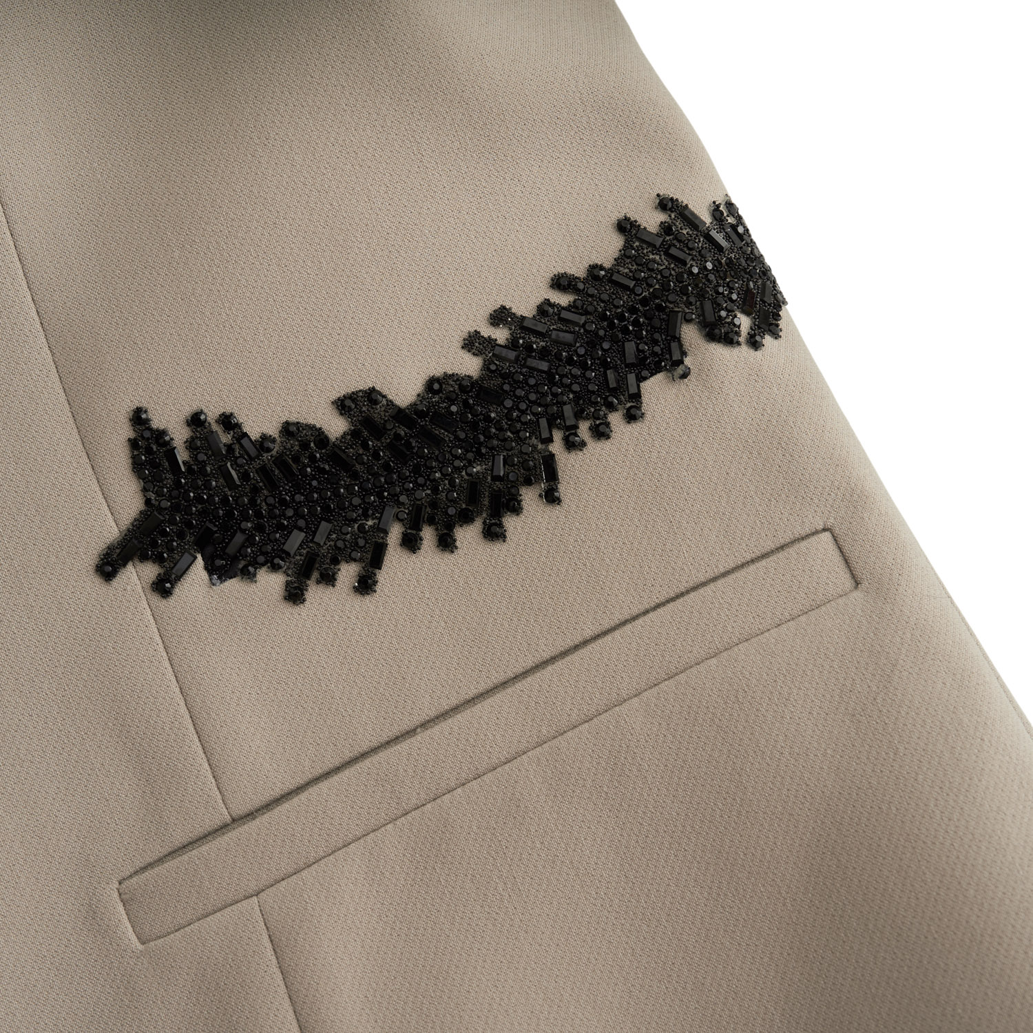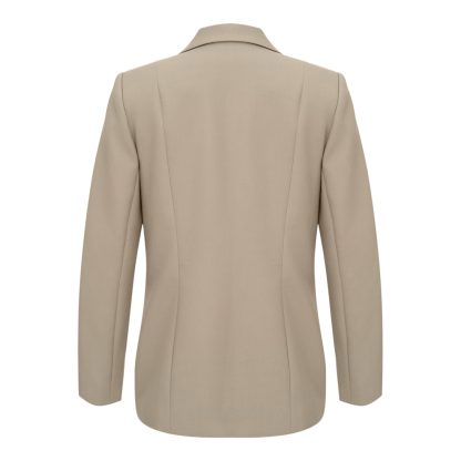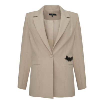 Elegant women’s blazer in a soft, neutral shade, tailored to perfection. The subtle black embroidery adds character, timeless sophistication, and comfort.