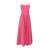 Long dress in a vibrant pink hue, featuring a structured bodice and delicate straps that highlight the feminine silhouette. The relaxed, fluid skirt creates elegant movement, combining clean lines with contemporary luxury. An elegant statement piece for looks that balance romantic sensibility with modern luxury aesthetics.